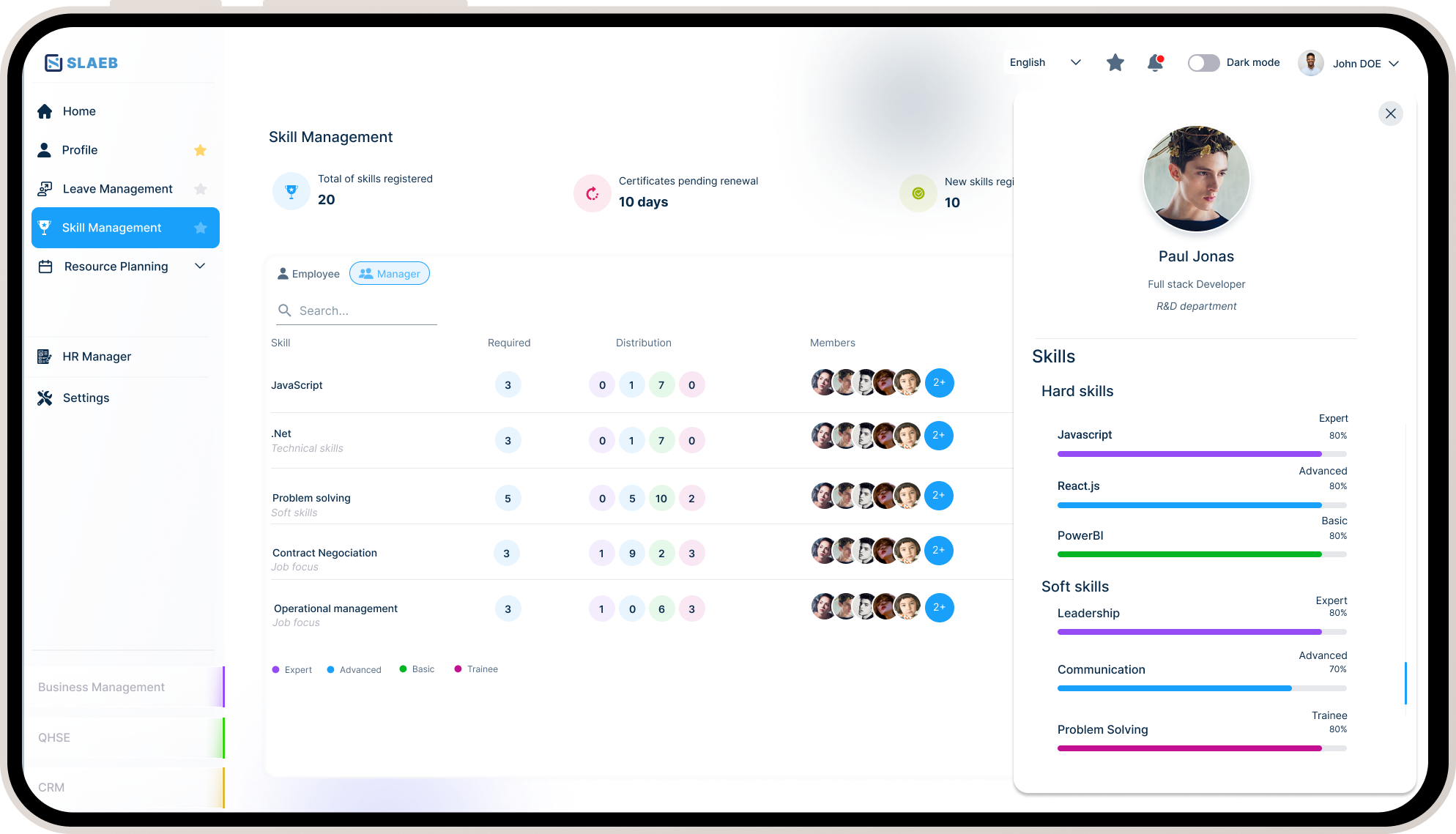 Suivez les compétences de vos collaborateurs, planifiez les formations et préparez les entretiens annuels. Ce module vous aide à engager vos équipes, anticiper leurs besoins et développer leur potentiel sur le long terme.
